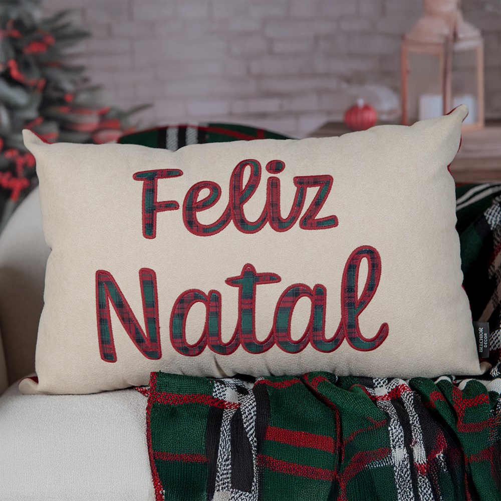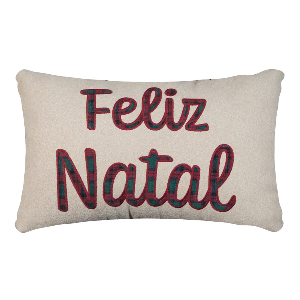 ALMOFADA NATALINA 533 COM BORDADO E APLICACAO 35 cm x 55 cm