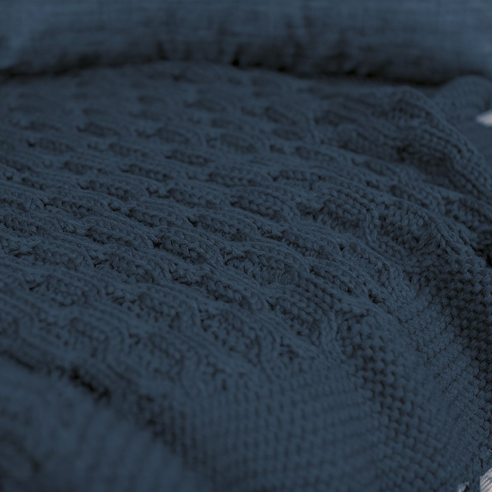 MANTA TRICOT BOSSA COM TASSEL AZUL PROFUNDO 0,90 m x 1,80 m