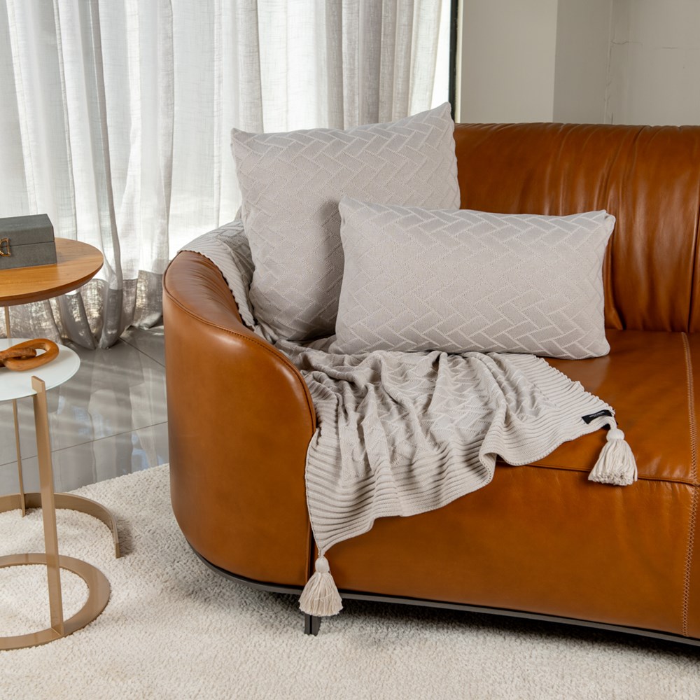 MANTA TRICOT LINK C/ TASSEL NATURAL 0,90 m x 1,80 m