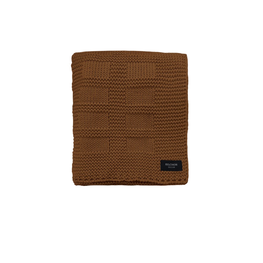 MANTA TRICOT QUADRIS TERRACOTA 0,90 m x 1,80 m.